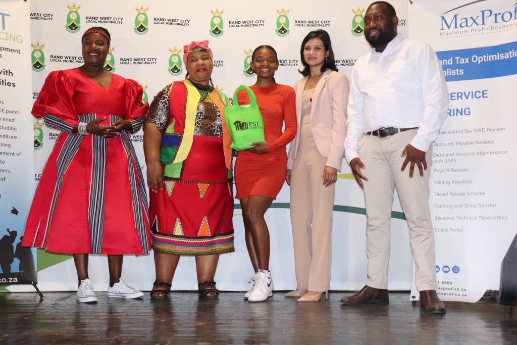The festivities kicked off with an electric atmosphere, pulsating with music, dance, and boundless excitement, with the Executive Mayor leading the charge. Renusha Ramdas, the CEO of EST-Sourcing, provided a glimpse into MaxProf’s corporate social initiative, a noble endeavour that earmarks approximately R1.2 million in bursaries for the youth across 25 municipal clients each year. Over the past two years, the Rand West Local Municipality’s youth had already benefited from R160,000 in bursaries, supporting eight promising students. This year, MaxProf took it a step further, contributing an additional R43,000 to ensure that two more students, Gabriel Chulayo and Charles Macuaua, could chase their dreams. In total, MaxProf’s contribution to the Rand West LM youth soared to an impressive R203,000.