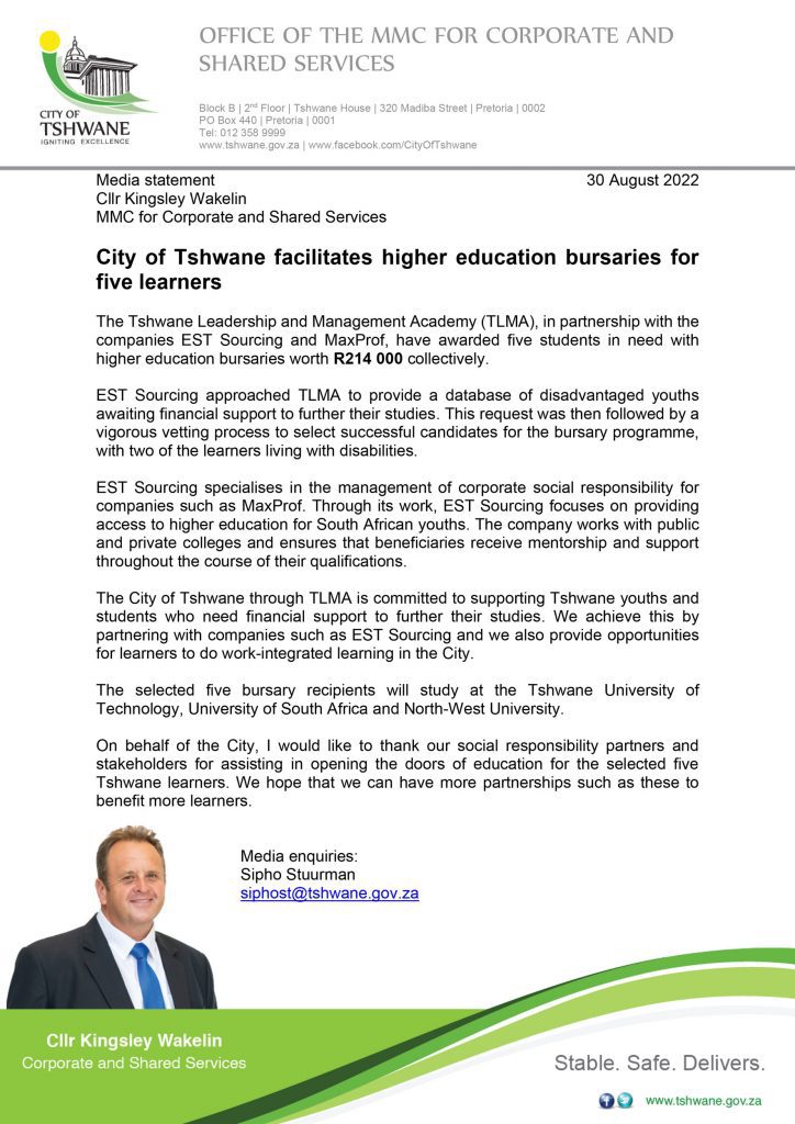 Click here to view the Media Statement on the City of Tshwane website