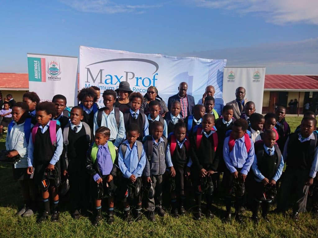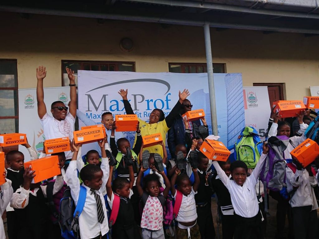 On the 8th of April 2019 MaxProf in partnership with Amathole District Municipality launched a “Stay In School” programme that saw 60 learners from two disadvantaged schools in Holela and Kabakazi Village (Mnquma Local Municipality) receive school shoes and school bags.